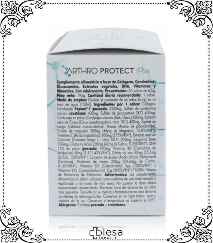 Es un complemento alimenticio en el tratamiento notomático de la patología musculoesquelética, compuesto de Colágeno, Condroitina, Glucosamina, Plantas Medicinales, DHA, Vitaminas y Minerales.