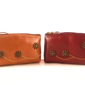 Billetero pequeño en piel juvenil de color rojo. Por un lado este bonito billetero piel juvenil color cuero cuenta con muchas funciones. Entre ellas cuenta con monedero de cremallera. Compartimentos para tarjetas. 1 Compartimento transparente para fotos o documentación. 1 Compartimento adicional. Finalmente cuenta con el grabado de dos margaritas y en color verde y azul. Fabricado en España.