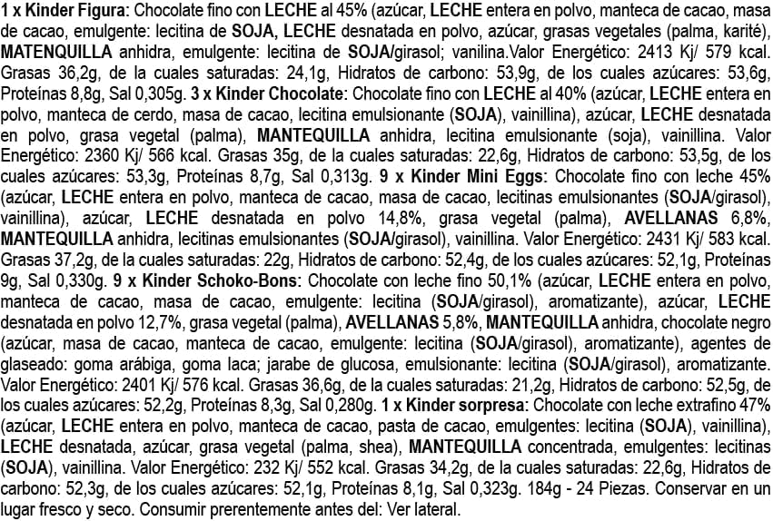 - ????????【Calendario Adviento 24 Chocolates y Bombones Kinder 】Esta Navidad Cuenta los días que faltan para Navidad con los deliciosos chocolates Kinder Sorpresa, SchokoBons, Kinder Chocolate y Huevo Kinder, cada día una sorpresa. Descubre cada Día el encanto de los Chocolates de la infancia con este Calendario de Adviento Especial; Incluye Felicitación Navideña.