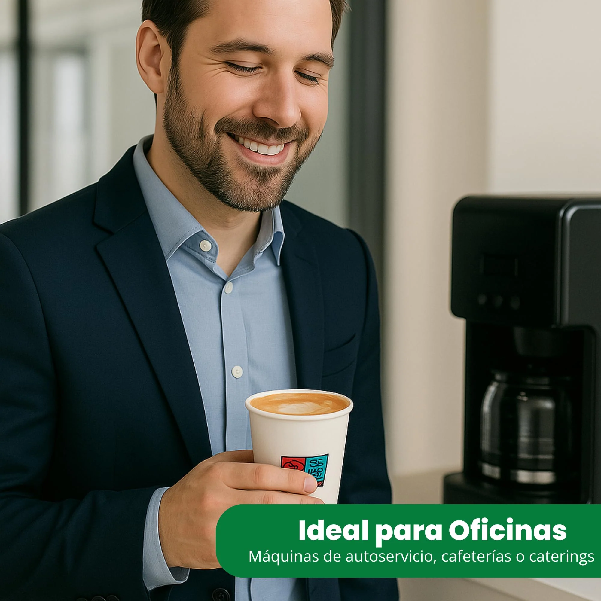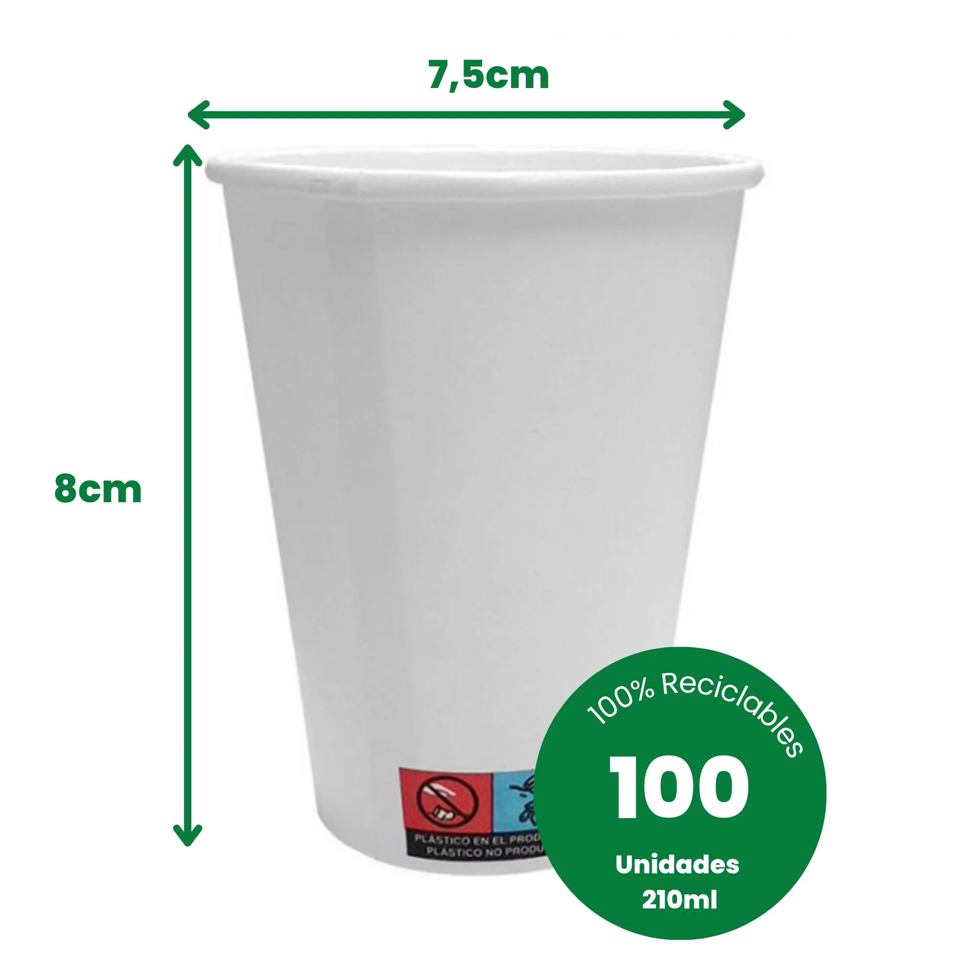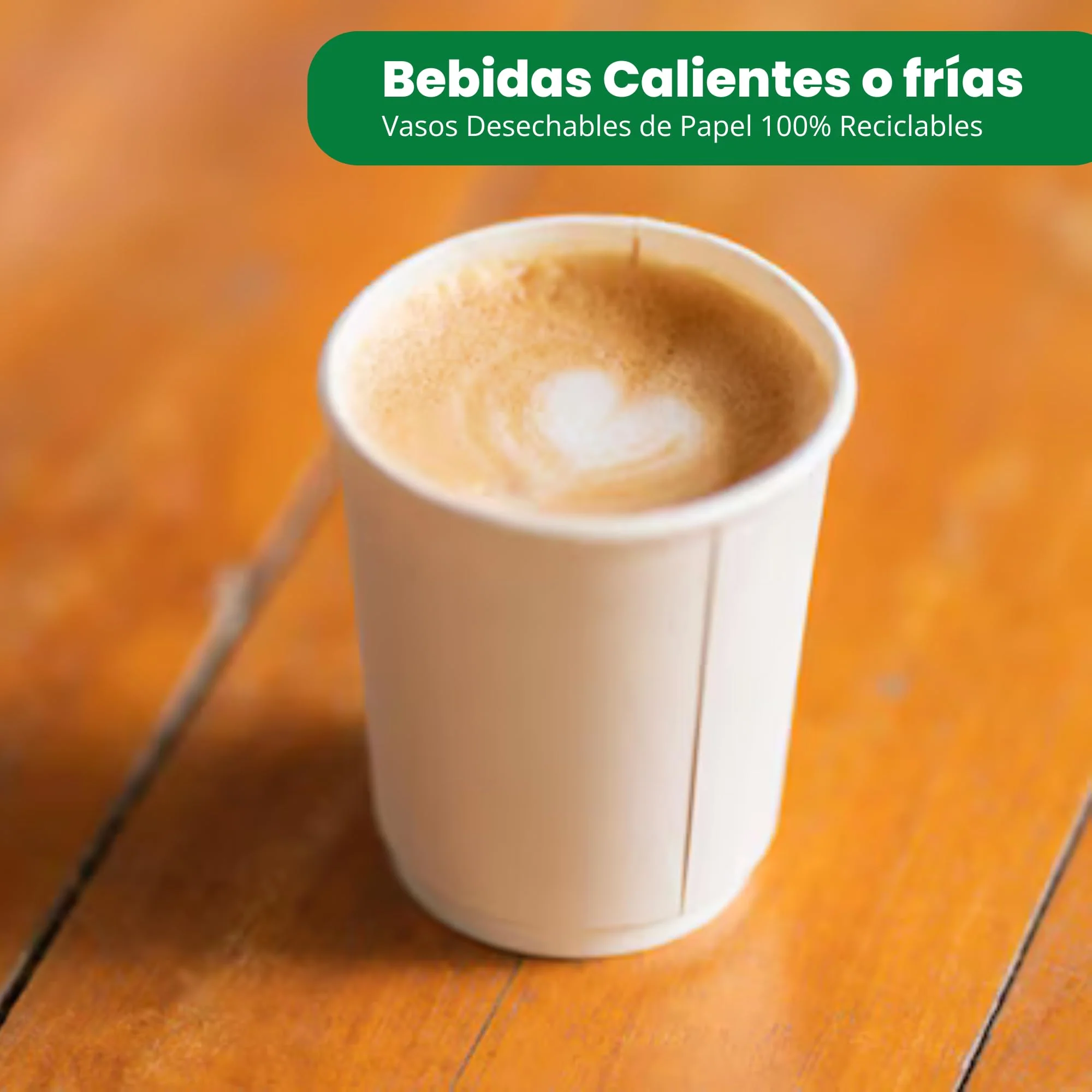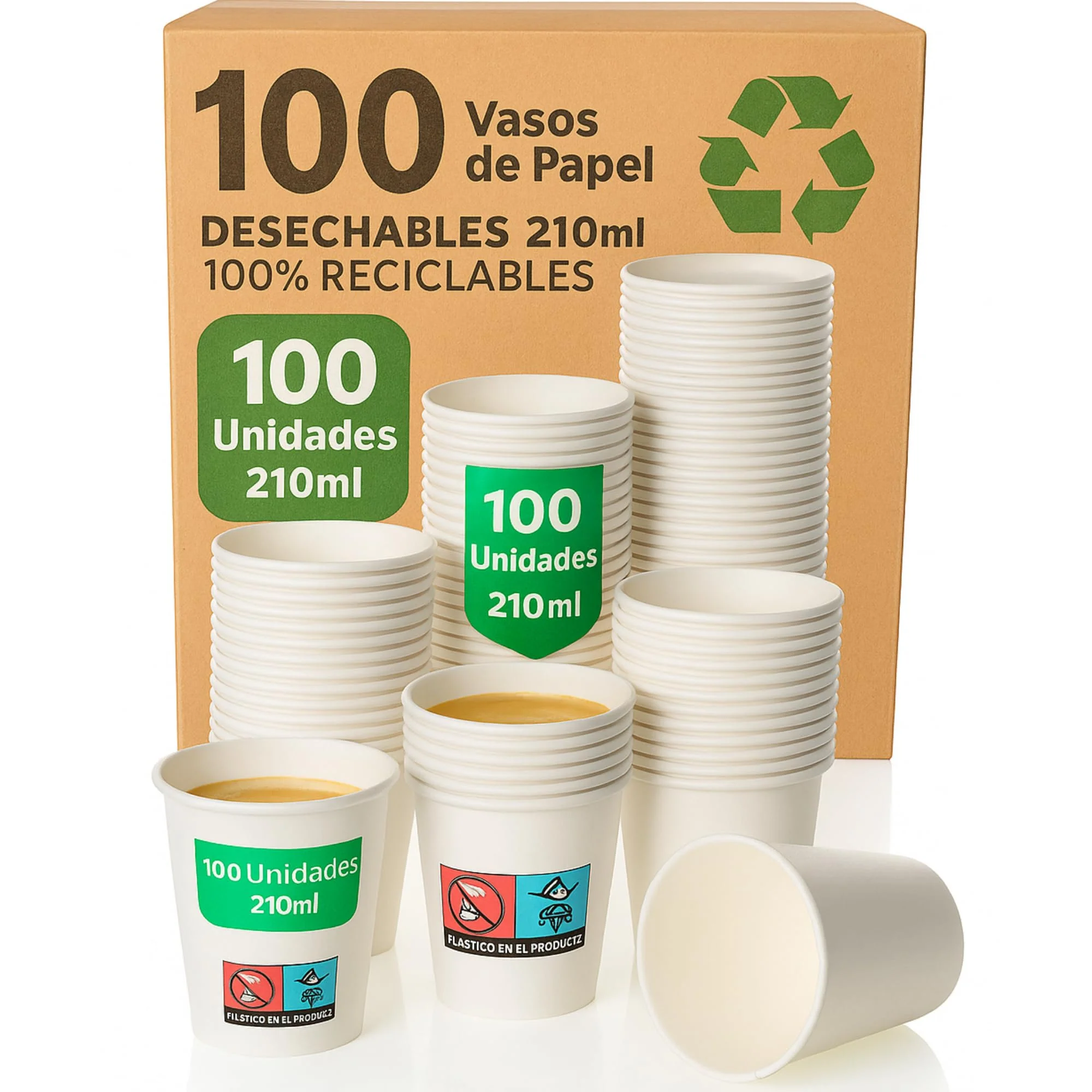 Vasos Desechables de Cart?n 210 ml ? La Opci?n Ideal para Tu Caf? o Bebida Caliente Si est?s buscando vasos desechables de cart?n que combinen calidad, resistencia y respeto por el medio ambiente, nuestros vasos de 210 ml son la elecci?n perfecta. Dise?ados para un uso vers?til en cafeter?as, oficinas, eventos o el hogar, ofrecen una experiencia c?moda y segura al consumir bebidas calientes o fr?as. Calidad y Resistencia Fabricados con cart?n de alta densidad, estos vasos garantizan firmeza, evitan fugas y soportan temperaturas elevadas sin deformarse ni alterar el sabor de la bebida. Su estructura t?rmica mantiene la bebida caliente durante m?s tiempo y evita que el calor se transmita al exterior del vaso. Caracter?sticas Principales: Cart?n grueso y resistente, sin filtraciones Aislamiento t?rmico eficaz Compatibles con tapas est?ndar Sostenibilidad y Compromiso Ambiental Estos vasos est?n elaborados con materiales reciclados y son completamente reciclables. Su composici?n libre de BPA y su car?cter biodegradable los convierte en una alternativa responsable frente a los vasos de pl?stico convencionales. Beneficios Medioambientales: 100 % reciclables Biodegradables y sin BPA Contribuyen a la reducci?n de residuos pl?sticos Versatilidad y Dise?o Funcional Con una capacidad de 210 ml, son aptos para caf?, t?, infusiones, chocolate caliente y otras bebidas. Su dise?o ergon?mico facilita el agarre y su presentaci?n neutra y elegante se adapta a cualquier entorno profesional o dom?stico. Se pueden complementar con paletinas de madera para mayor comodidad. Ventajas Adicionales: Dise?o c?modo y funcional Compatibilidad con accesorios Aptos para negocios, oficinas y uso personal Compra con Confianza Elige una soluci?n sostenible sin renunciar a la calidad. Nuestros vasos desechables de cart?n de 210 ml est?n pensados para quienes valoran tanto la funcionalidad como el compromiso con el medio ambiente. Haz tu pedido hoy y mejora la experiencia de tus clientes o invitados con cada sorbo.