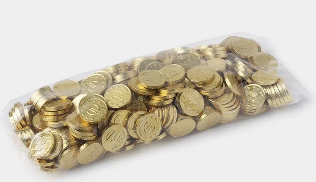 • Bote de 300u de monedas pequeñas de 2,5g cada una de chocolate con leche 30% cacao.